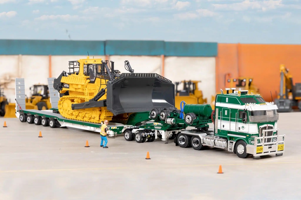 A convoy of Kenworths were rolled out across the show, led by a C509 hooked up to Drake Collectibles’ first-ever Freighter triple road-train set for Netherlands-based Mammoet Group, one of the world’s largest heavy-haulage companies; followed by a T909 Director for Membrey’s Transport & Crane Hire unveiled by Managing Director Craig Membrey and son Jack (pictured below).