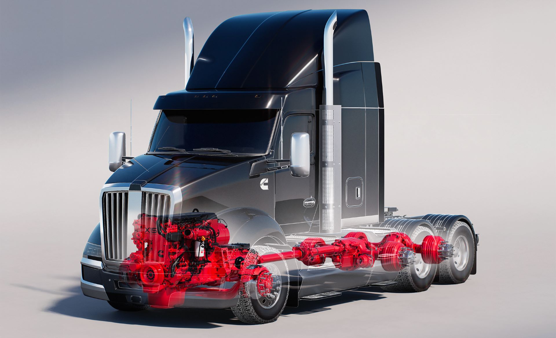 A world-first display showing the integration of Cummins X15 engine, Eaton Cummins 18-speed Endurant speed transmission, and Meritor driveline and axles is in the spotlight at Brisbane.